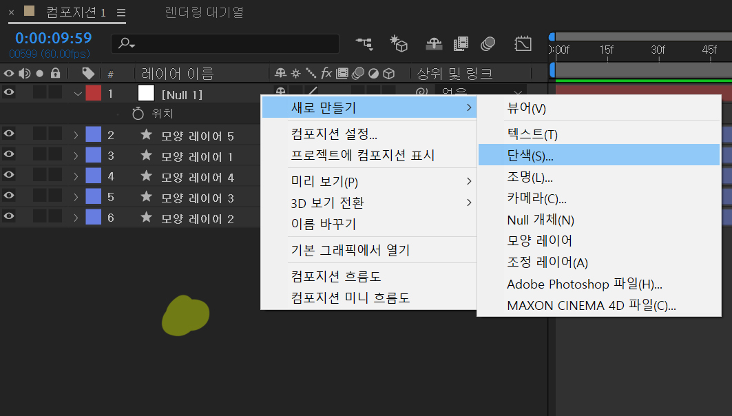 수지 초정을 쉽게 하기위해 솔리드 레이어를 널아래로 이동