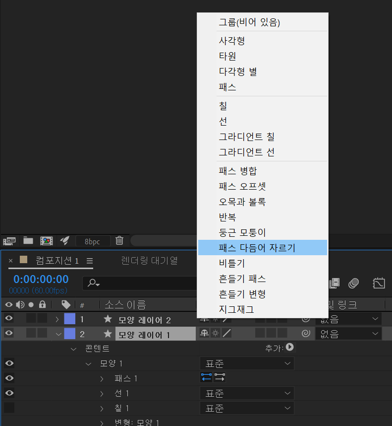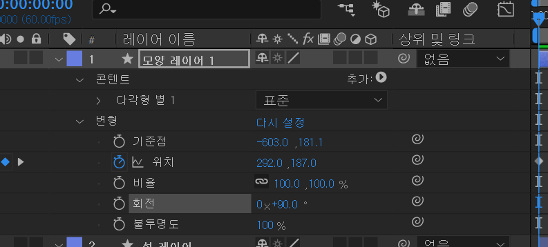 삼각형도 만들어 줄껀데.오각형 레이어를 클릭해서