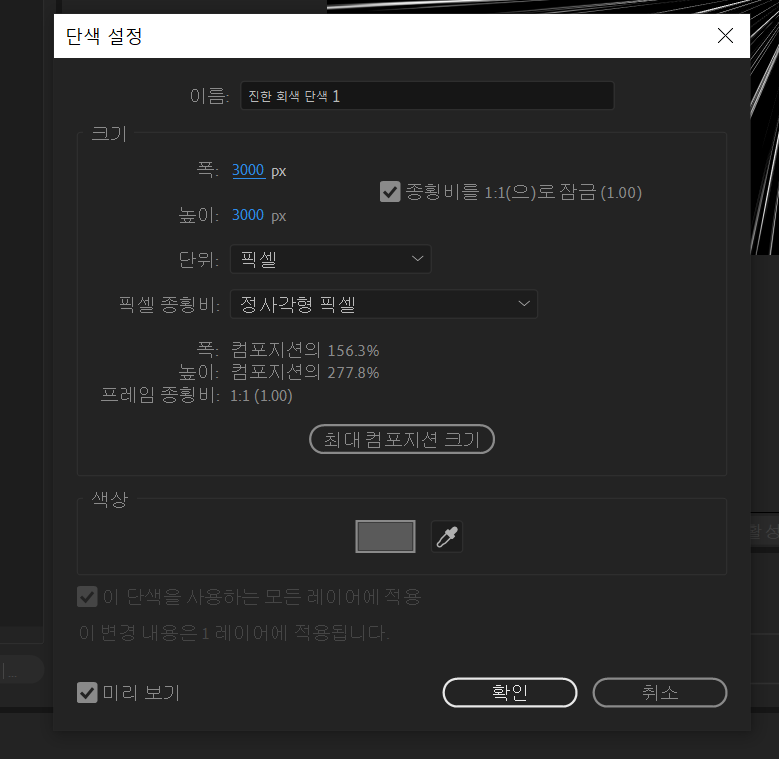 위에 내말대로 단색레이어를 크게 만들었으면 화면 전체를 덮을껀데