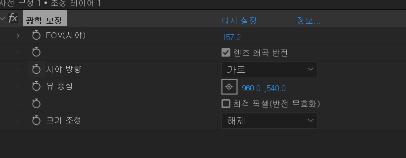 FOM(시야) 160에서 약간식 조정해주시면되고
