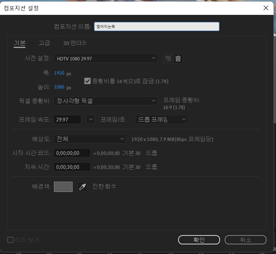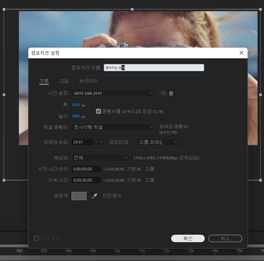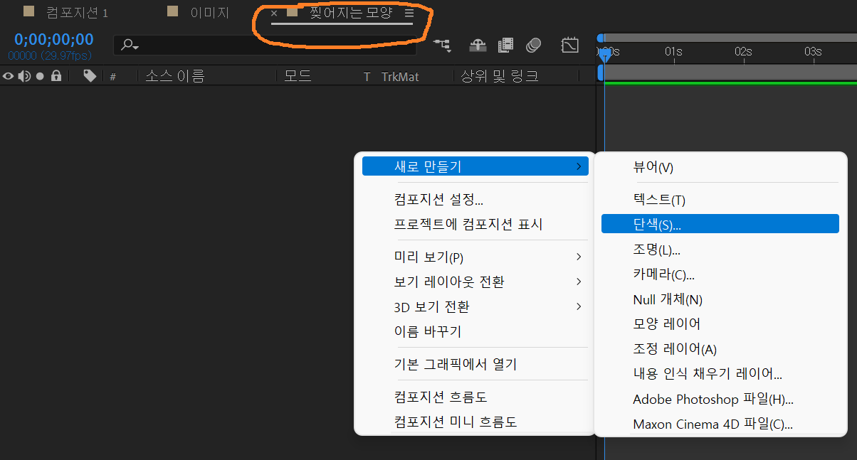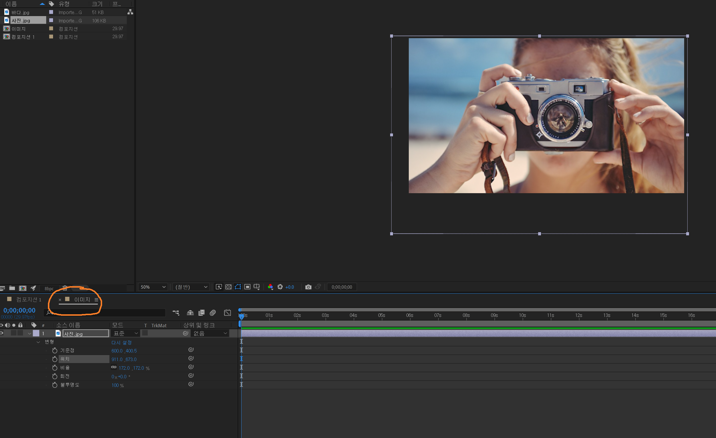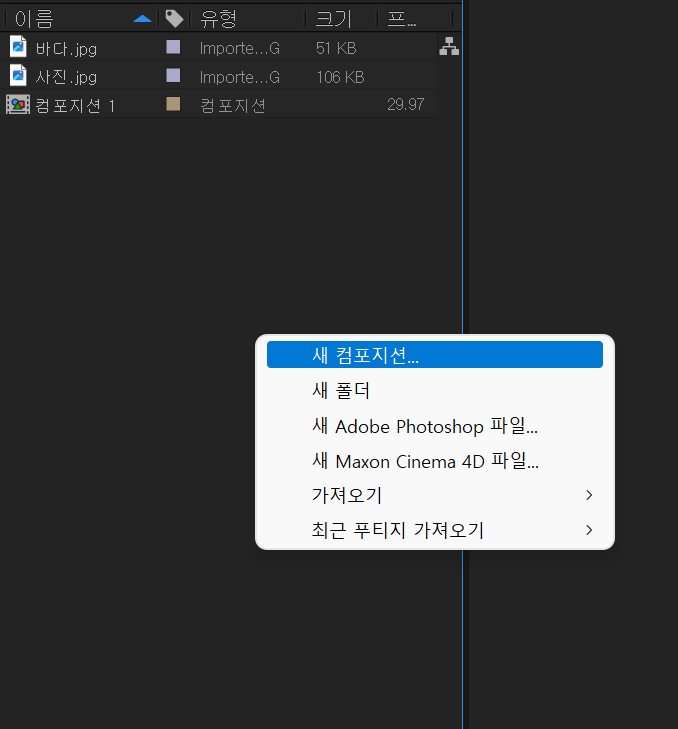 새 컴포지션(이름 : 이미지)로 만듭니다.