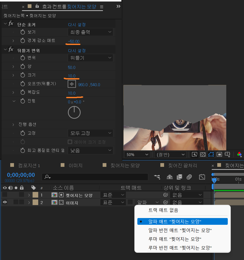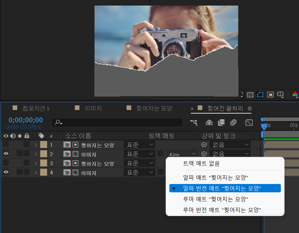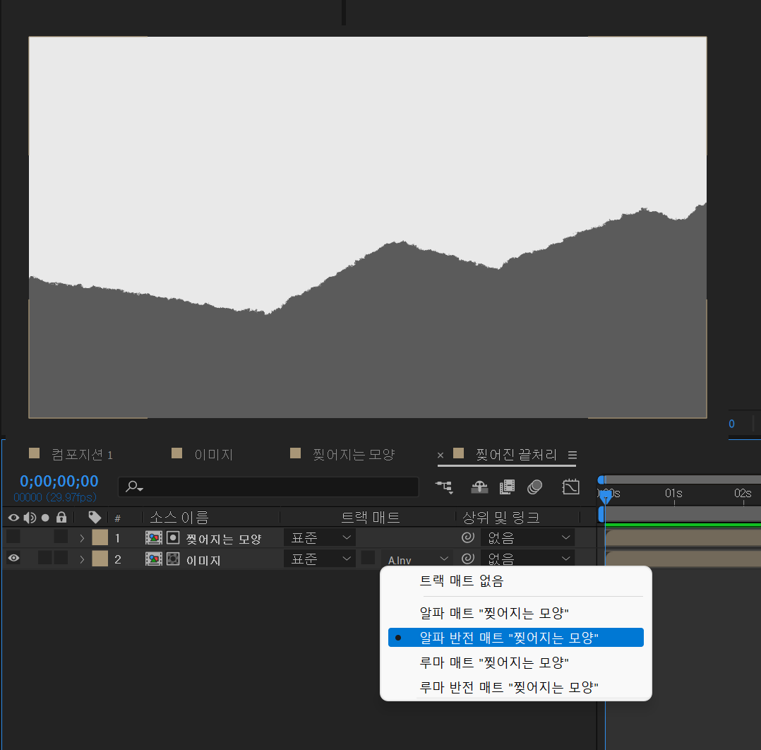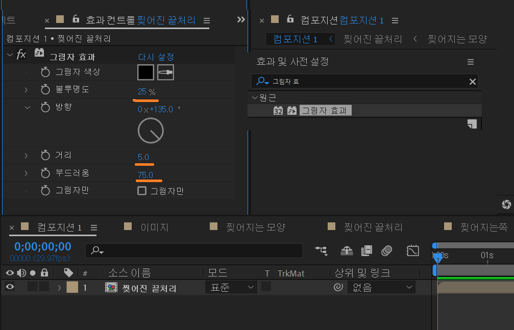 1번 찢어지는 모양 컴포지션으로 선택해주면 됩니다.