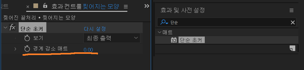 알파 반전 매트 "찢어지는 모양"으로 선택합니다.