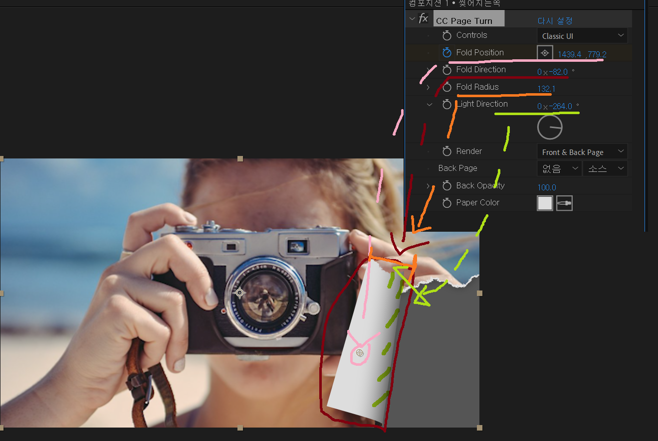 찢어져 남는페이지 컴포지션 (이미지에는 찢어진끝처리)
